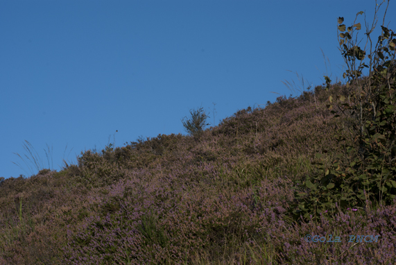 Aspetto tardo estivo della brughiera (Calluna vulgaris fiorisce da fine agosto sino ad autunno inoltrato). A destra si vede come altre specie arboreo – arbustive cerchino di prendere il sopravvento (Corylus avellana, nocciolo).