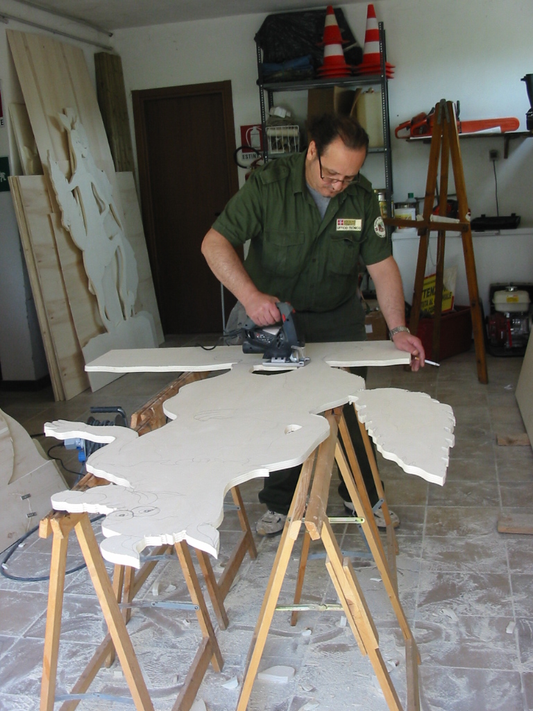 DI SEGUITO ALCUNE FOTO DELLE FASI DI REALIZZAZIONE DELLE SAGOME DEI “SENTIERI DI FIABA” REALIZZATE DALLA MANO ARTISTICA DEL COLLABORATORE DEL PARCO SALVATORE COSSU :