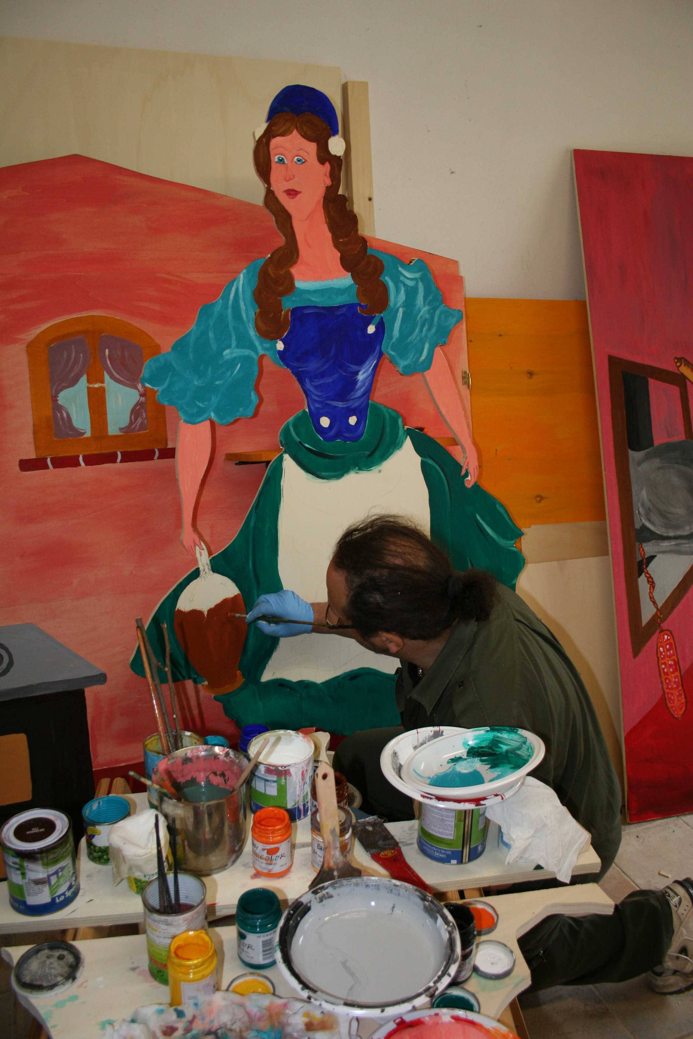 SALVATORE CHE DIPINGE LA CONTADINA DELLA FAVOLA “LA VOLPE E IL LUPO”