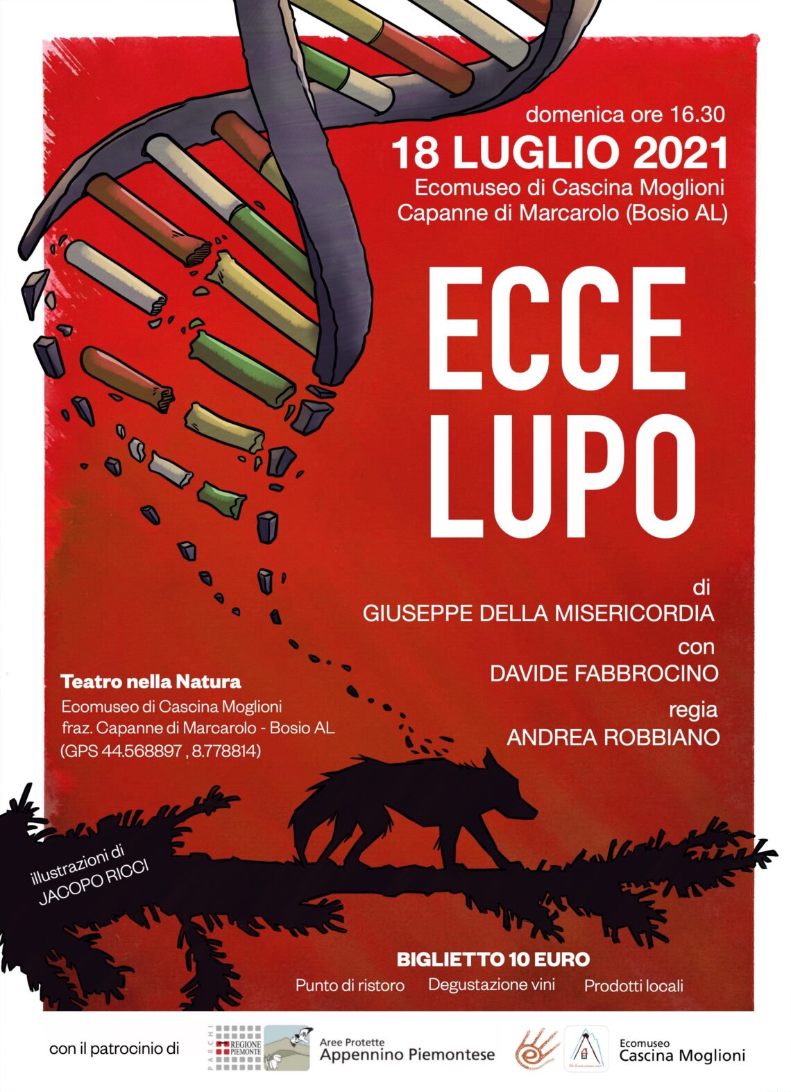 Domenica 18 luglio nel Teatro nella Natura dell’Ecomuseo di Cascina Moglioni, nel Parco Capanne di Marcarolo, è andato in scena ECCE LUPO uno spettacolo che affronta la questione del ritorno del lupo in modo appropriato e documentato con un approccio artistico divertente, coinvolgendo il pubblico in una riflessione che parte dal grande predatore per arrivare al rapporto tra uomo e Natura.