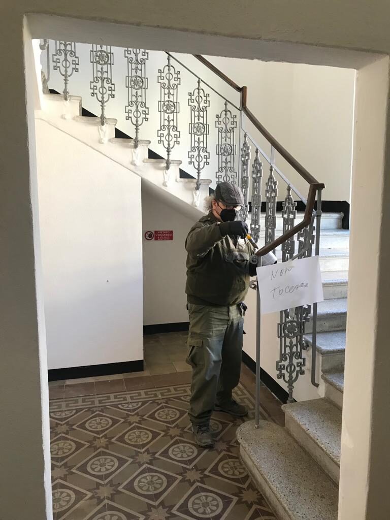 L’esecutore tecnico Salvatore Cossu, specializzato in falegnameria e restauro legno, ha integrato il lavoro strutturale eseguito dai fabbri con il restauro conservativo del corrimano in legno che è stato riparato in alcuni punti, levigato, verniciato e riposizionato sulla ringhiera.