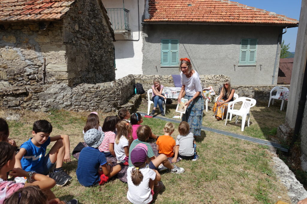 Il Laboratorio TERRA DI FIABA dell’Ecomuseo di Cascina Moglioni è stato costituito per la promozione della lettura ad alta voce nell’ambito del Programma nazionale “Nati per Leggere”. La sede del Laboratorio – che peraltro è alla continua ricerca di volontari – è la “Biblioteca della Fiaba“ ospitata nel Centro di Documentazione della Storia e della Cultura locale di Palazzo Gazzolo, a Voltaggio, dove sono raccolte fiabe e favole classiche, della tradizione popolare italiana, l’opera completa di Rodari, i testi bilingue della sezione “intercultura” e libri che raccontano temi d’attualità. Sabato 13 agosto 2022 il Laboratorio Terra di Fiaba ha partecipato al Sarvego Festival edizione 2022, nella frazione di Vegni (Carrega Ligure). La lettura si è svolta nelle pertinenze della chiesa della frazione e ha visto la partecipazione di circa 40 persone, tra adulti e bambini. Quest’anno il Laboratorio ha scelto come tema principale il personaggio della volpe, che è anche simbolo del Festival. Queste le letture proposte: Filastrane – A. Lavatelli; Le avventure della piccola volpe – U. Stark; Come la volpe imparò a catturare l’alce – dalla raccolta I canti dei ghiacci di L. Dal Cin; La volpe e il Tomte – A. Lindgren; Favole di Esopo; Il lupo e la volpe – dalla raccolta Favole dell’Oltregiogo; Giovannino senza paura – R. Piumini.