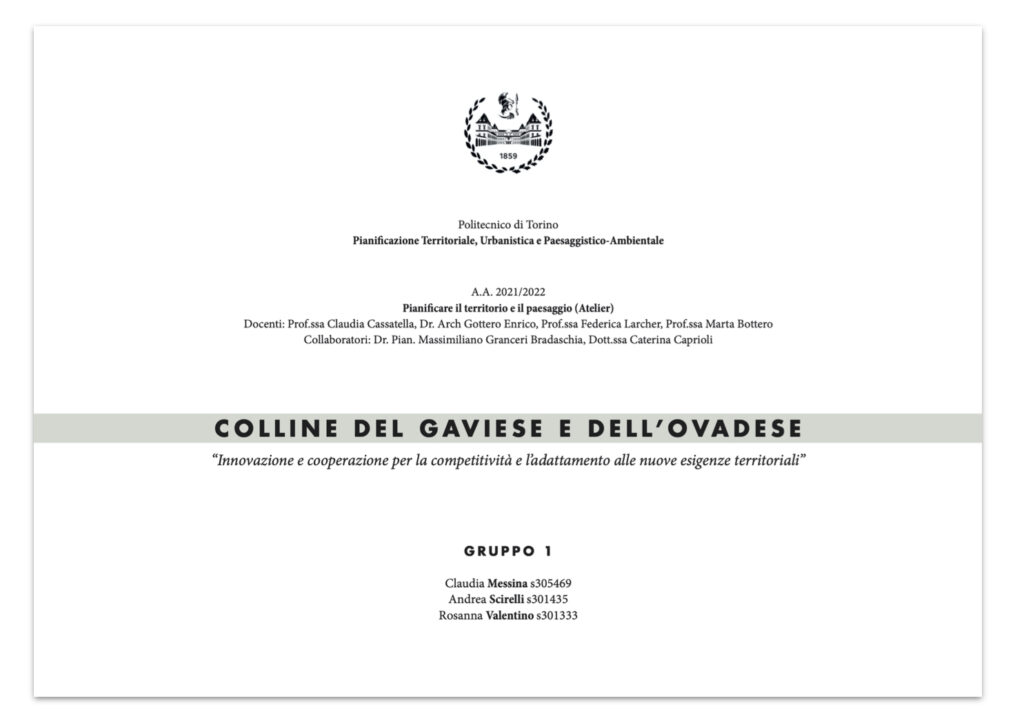 Ricerca Politecnico di Torino Pianificazione Territoriale, Urbanistica e Paesaggistico-Ambientale “COLLINE DEL GAVIESE E DELL’OVADESE”