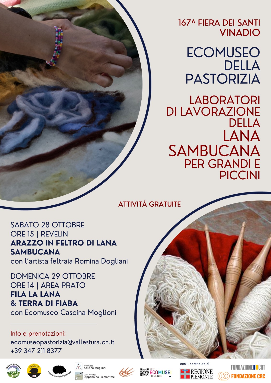 Discorso analogo per il laboratorio sulla lavorazione artistica del feltro della mastra feltraia Romina Dogliani, realizzato in occasione della Fiera del bestiame delle antiche razze locali di Capanne di Marcarolo, un’attività ormai quasi dimenticata, nonostante rappresenti un esempio virtuoso di economia sostenibile, rispettoso degli uomini, degli animali e della Terra.