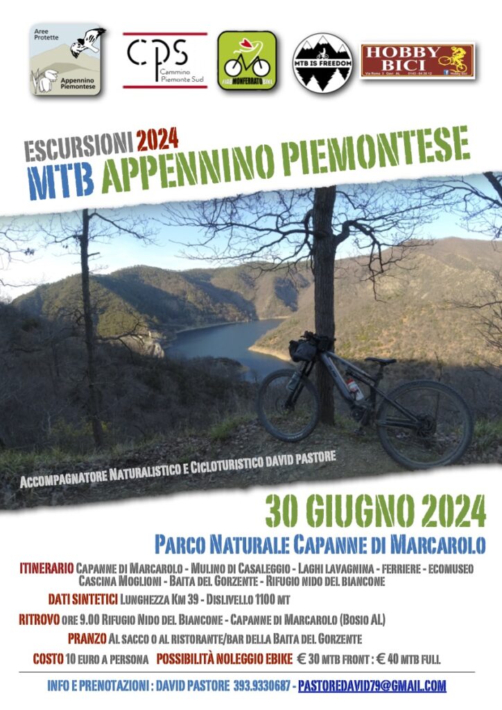Dal 2016 l’Appennino Piemontese è coinvolto inoltre in due importanti progetti, uno locale e l’altro nazionale, dedicati alla bici: “La via dei Campioni tra Natura e Mare” (https://www.piemonteoutdoor.it/it/attivita/cicloescursionismo/dei-campioni) e “Appennino Bike Tour” (https://appenninobiketour.com). - escursione in mtb sulla tappa 4 del Cammino PiemonteSud – domenica 30 giugno