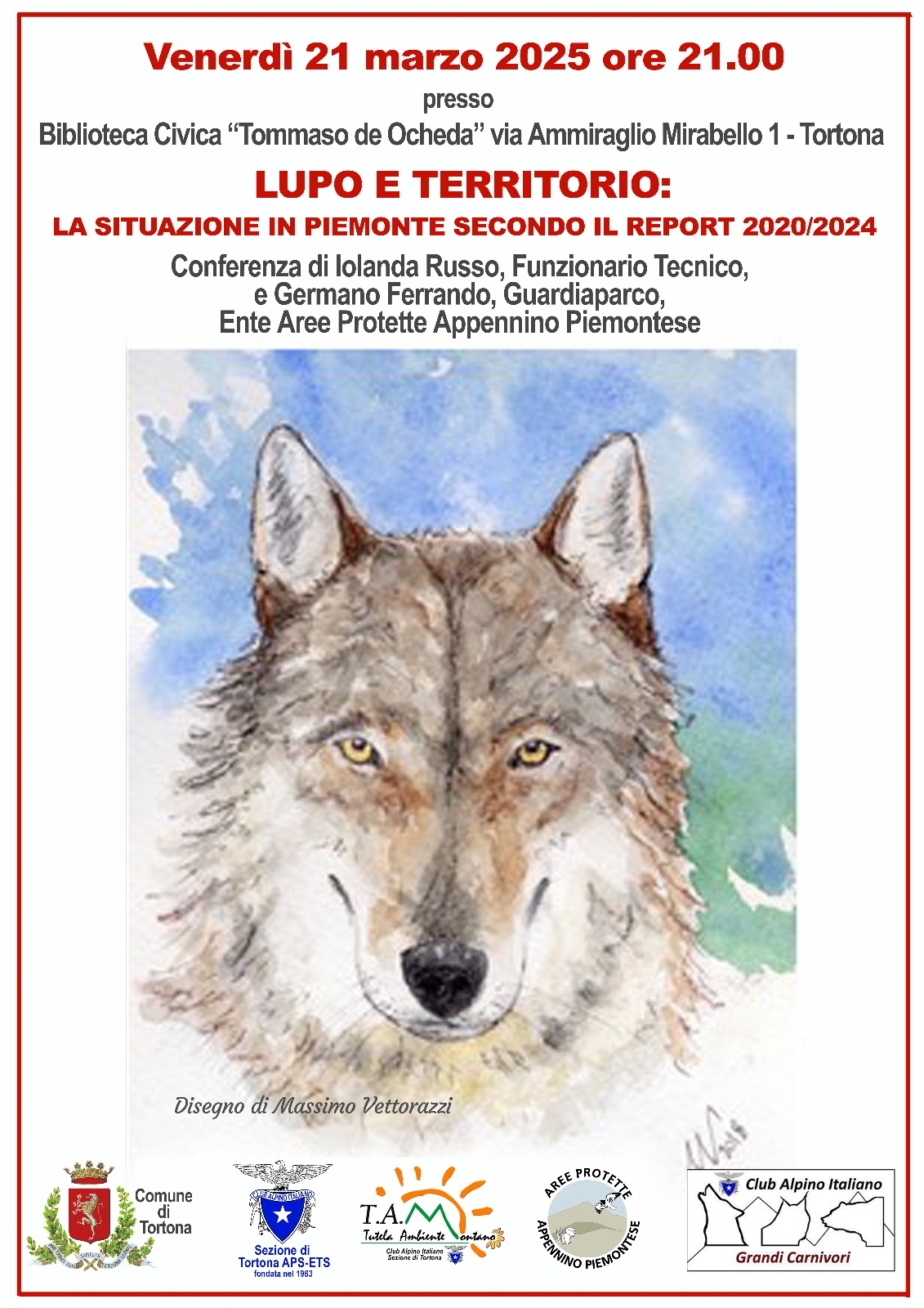 Venerdì 21 marzo alle 21 presso la Biblioteca Civica di Tortona si terrà una serata informativa sul lupo dal titolo “Lupo e territorio: la situazione in Piemonte secondo il report 2020-2024”.