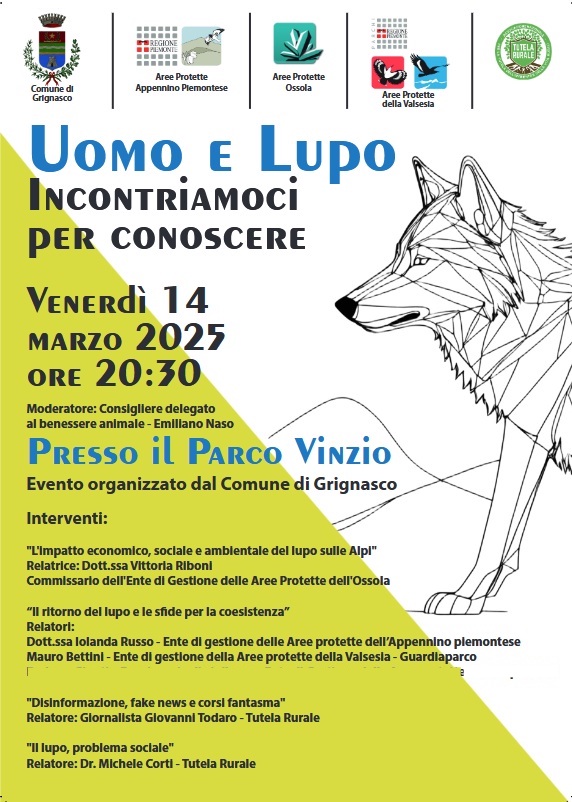 La prima iniziativa si è tenuta presso il Parco Vinzio del Comune di Grignasco (NO) con un confronto sul tema della presenza del lupo sulle Alpi, analizzando le implicazioni economiche, sociali e ambientali legate alla sua espansione, le sfide della coesistenza e il ruolo della corretta informazione nella gestione di questa specie protetta.