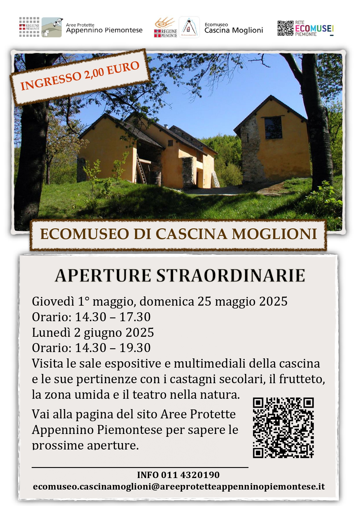 - lunedì 2 giugno 2025 – orario 10.30 / 19.30 – Evento per la Festa della Repubblica – Per informazioni e prenotazioni visita la pagina dedicata del sito FESTA DELLA REPUBBLICA ALL’ECOMUSEO DI CASCINA MOGLIONI