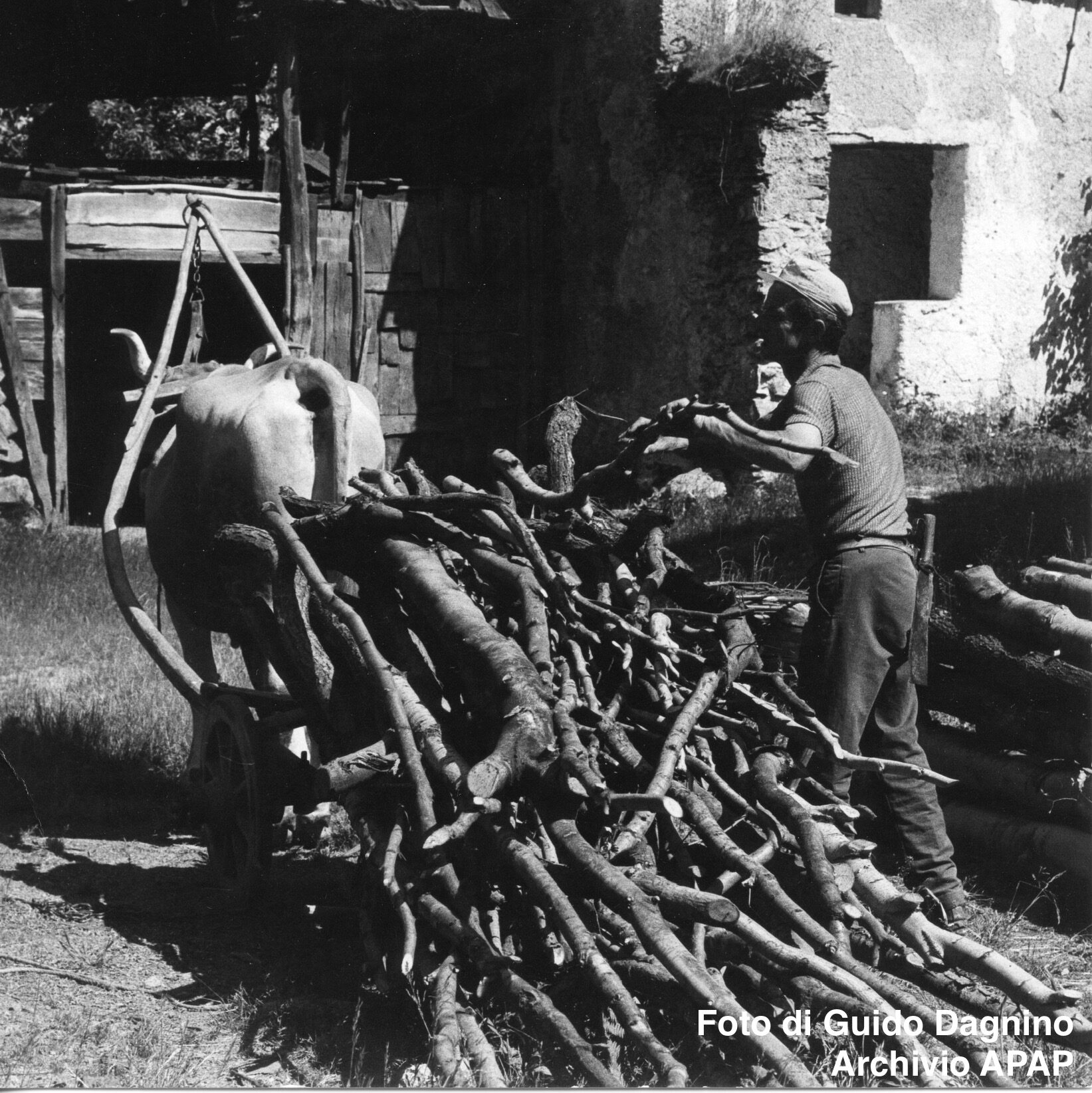 “Si tagliava della legna… si raccoglieva tutto, che ci rimaneva pulito come qua. (…) Da Tugello si partiva al massimo alle due con i buoi perché il carro era al Lago Vecchio pronto (già carico). (…) Se la legna era promessa, uno veniva a casa di giorno e sennò poteva anche arrivare a casa a mezzanotte perché i buoi non è che volano, quando hanno fatto 150 metri, bisogna lasciarli fermare: sono carichi. (…) A tagliare legna ho cominciato che avrò avuto nove anni.”