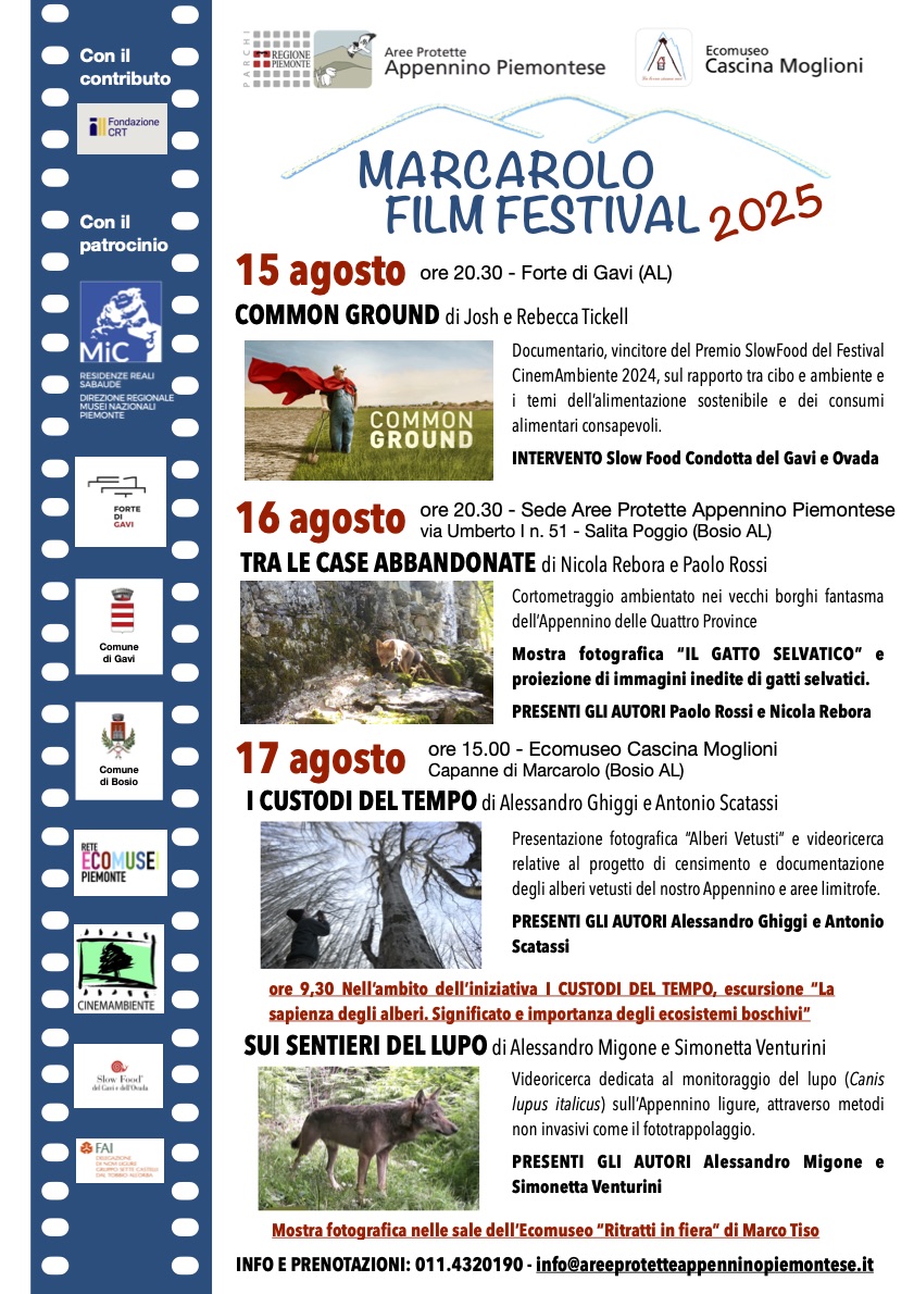 Il programma del Marcarolo Film Festival 2025 sarà il seguente: