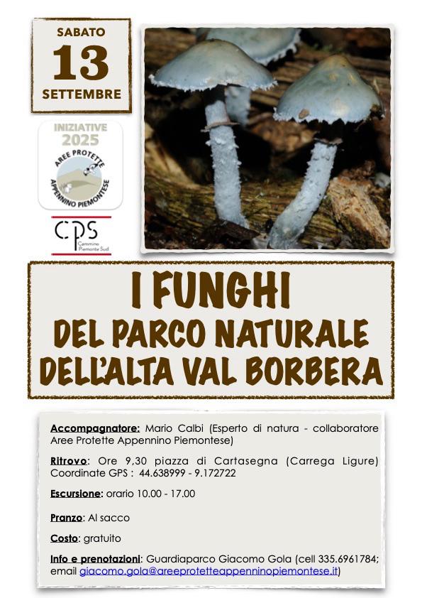 Sabato 13 settembre 2025 l’Ente di gestione delle Aree Protette dell’Appennino Piemontese, nell’ambito della rassegna “CAMMINO PIEMONTESUD” propone una escursione dedicata ai funghi, per il riconoscimento e la conoscenza delle caratteristiche.