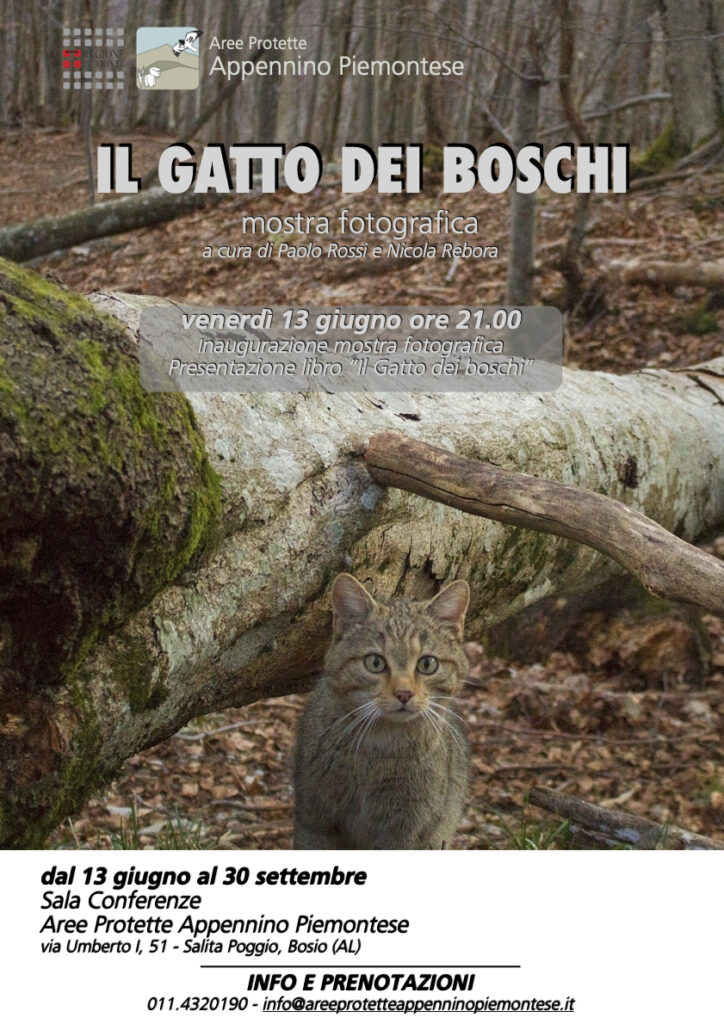Nell’ambito della serata i partecipanti hanno potuto visitare la mostra fotografica IL GATTO DEI BOSCHI allestita dai due autori presso la Sala conferenze delle Aree Protette dell’Appennino Piemontese a Bosio AL (via Umberto I, 51 – Salita Poggio).