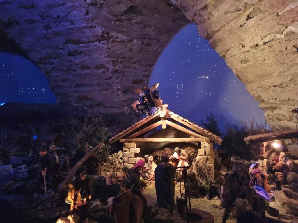 Il Presepe Artistico, nato nel 1995 grazie all’impegno di alcuni genitori della comunità e ospitato nella suggestiva cripta sottostante il catino absidale della Chiesa, è oggi un patrimonio collettivo che unisce arte, fede, storia e partecipazione popolare. La cripta stessa, un tempo antico cimitero e oggi parte integrante della memoria del borgo, sorge su fondamenta che la tradizione attribuisce al primo castello del paese.